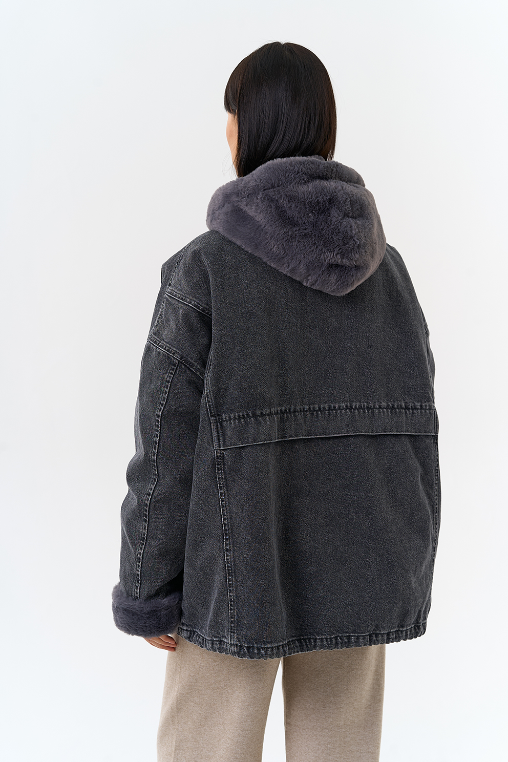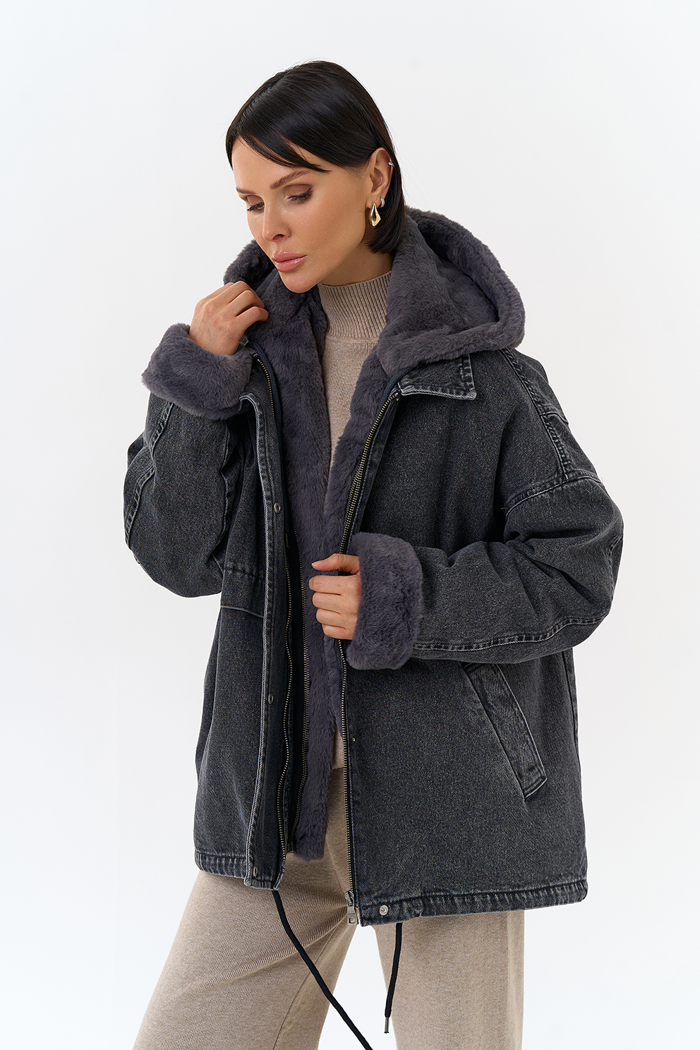 Крой воротника - съемный капюшон, отделка эко мех